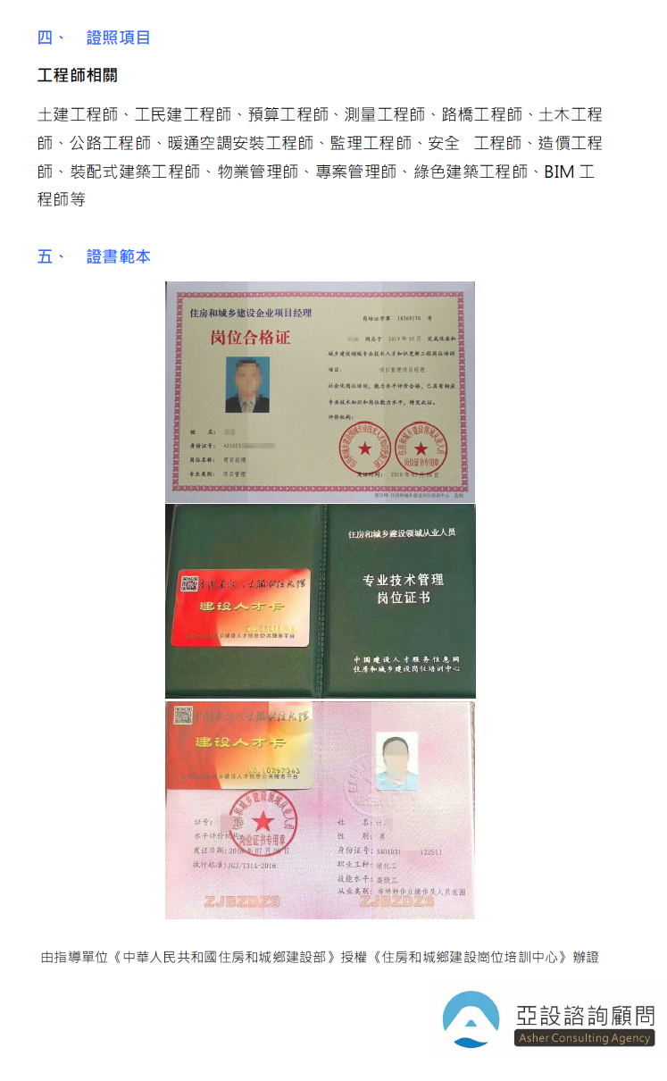 大陸證照-亞設諮詢顧問
