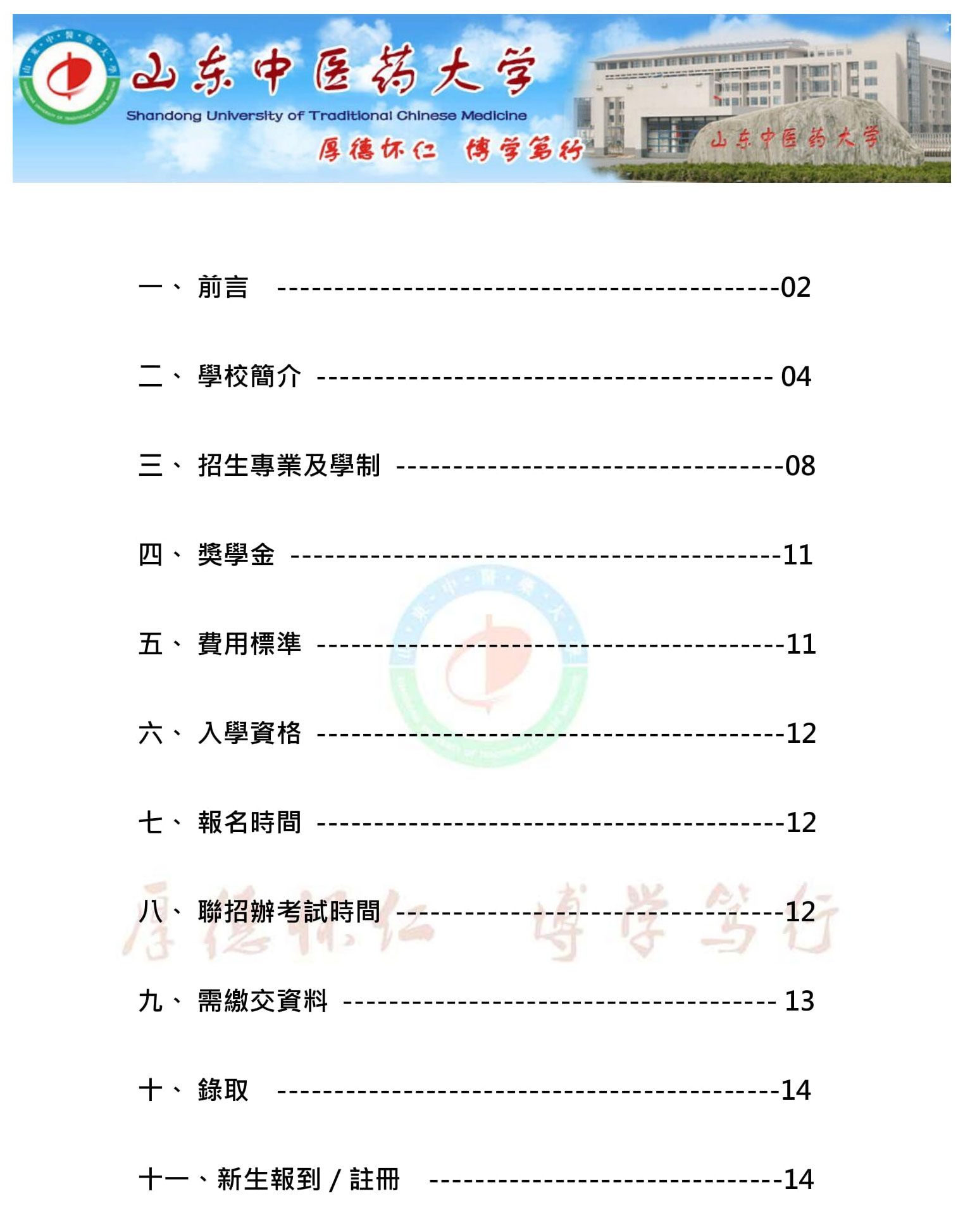 【亞設諮詢】山東中醫藥大學港澳台招生簡章