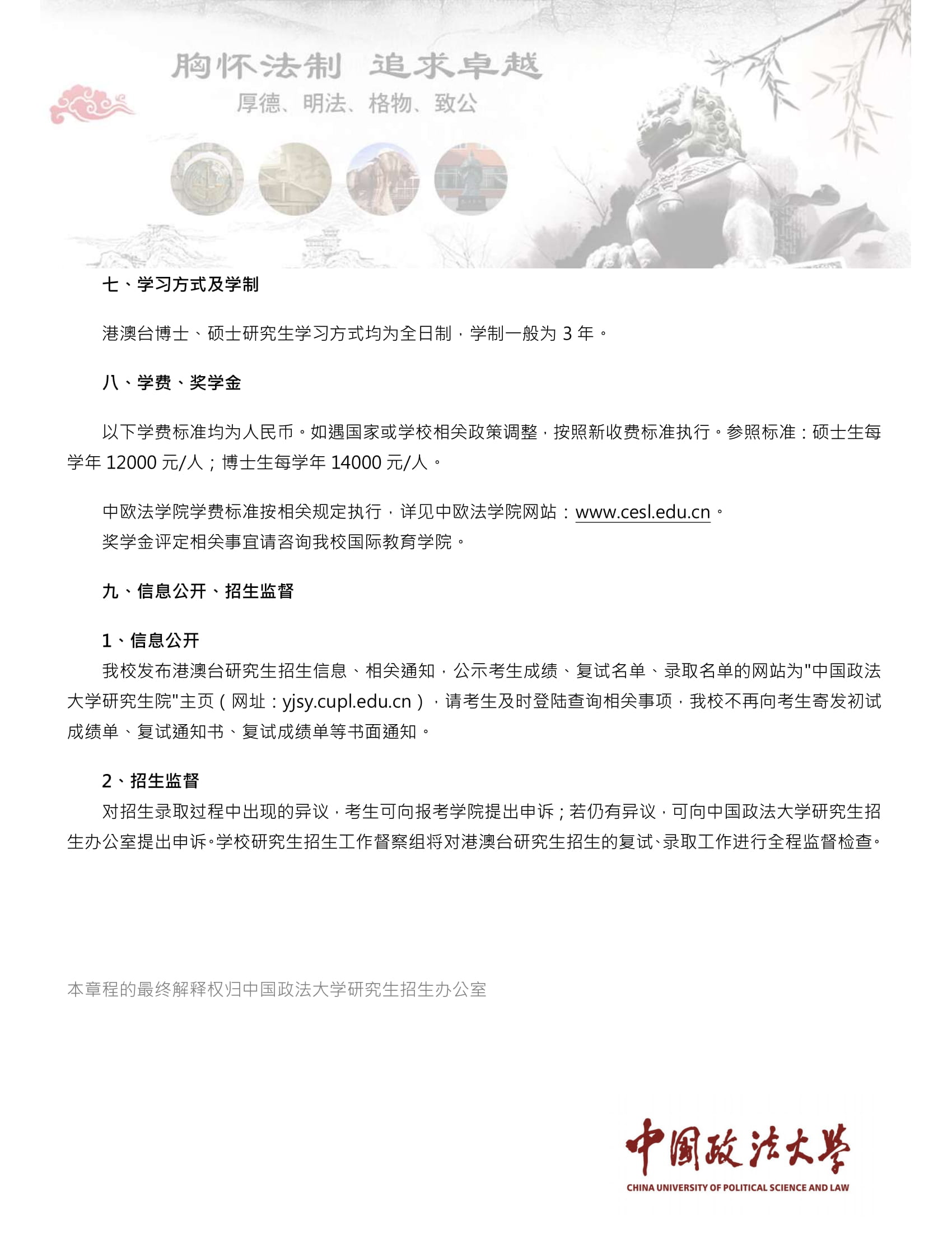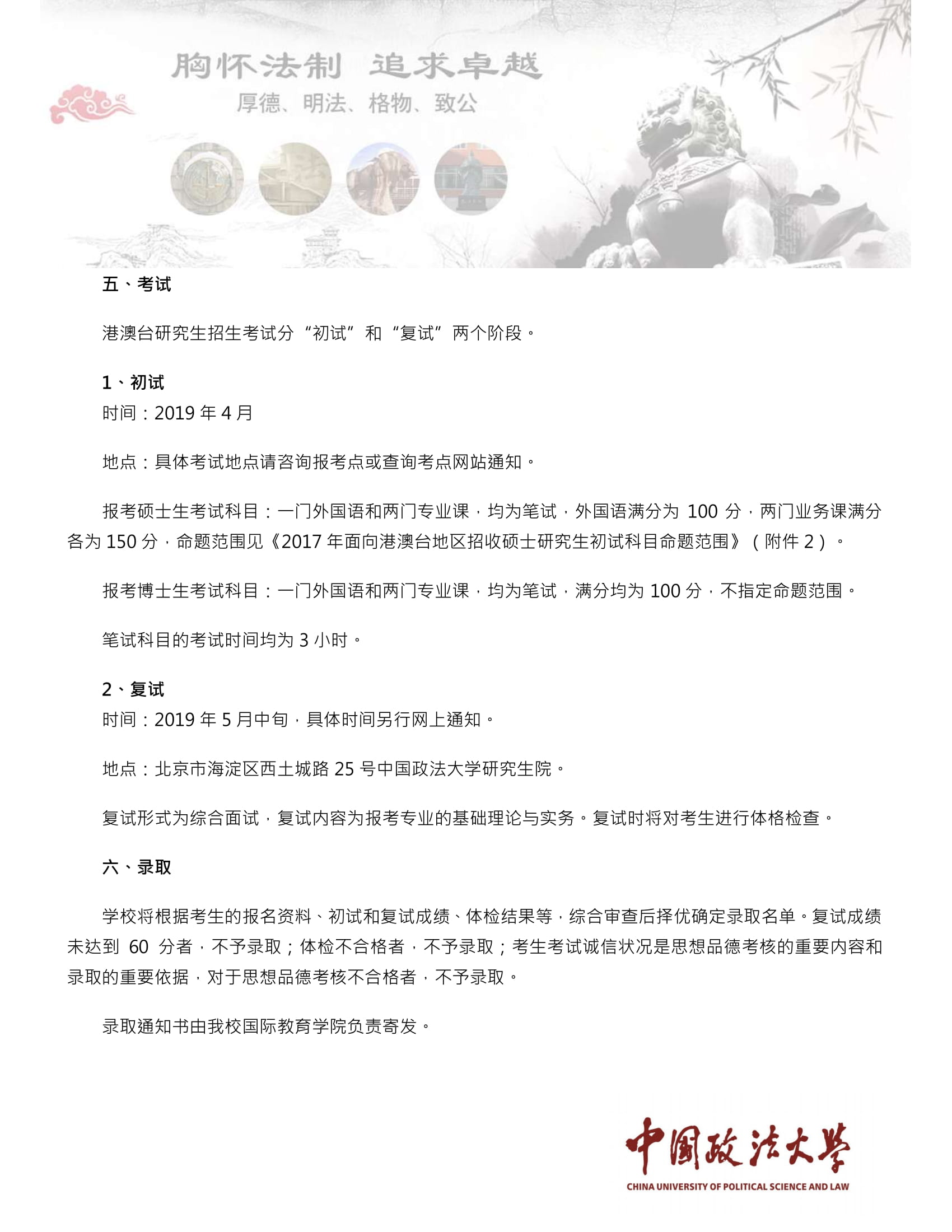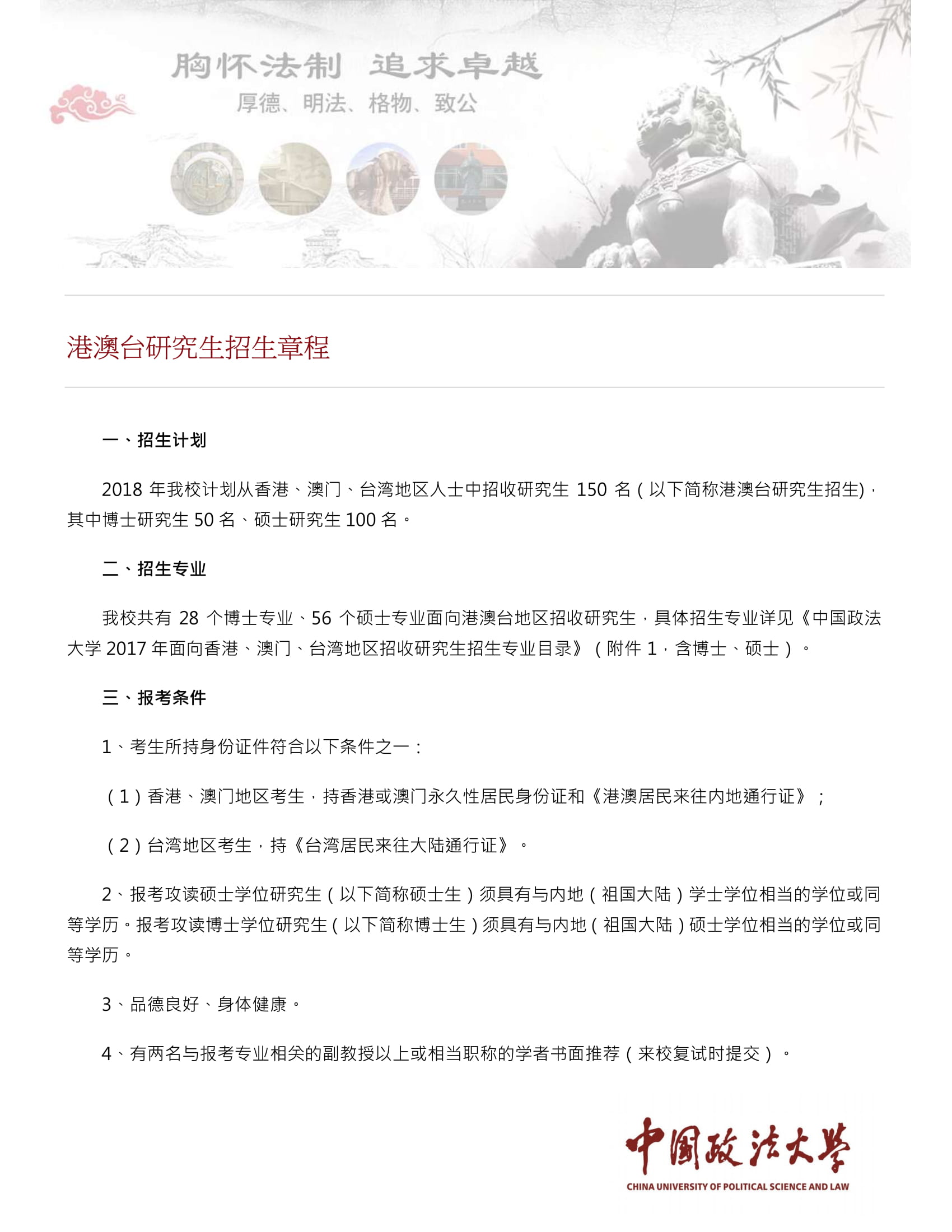 【亞設諮詢】中國政法大學港澳台招生簡章